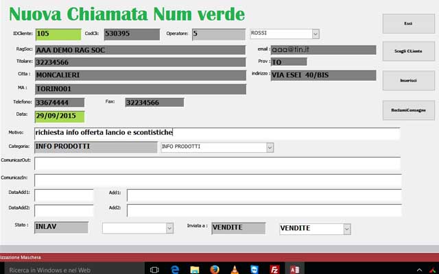 Il software funziona con un Db che funziona con Access Runtime, puo' essere messo in rete ed essere utilizzato da piu' postazioni.